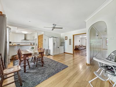 Discover this delightful single-level, colonial-style home nestled in the heart of Tanilba Bay, just a short distance from the shopping centres (approx. 400m), local primary school (approx. 250m) and waterfront (approx. 380m). Perfectly designed for comfort and practicality, this home offers a warm and inviting atmosphere with plenty of character. The property features two spacious, air-conditioned living areas with beautiful timber flooring complemented by ornate ceiling roses and cornices that add timeless charm. The modern kitchen boasts timber benchtops and high-quality appliances, making it an ideal space for family meals and entertaining.