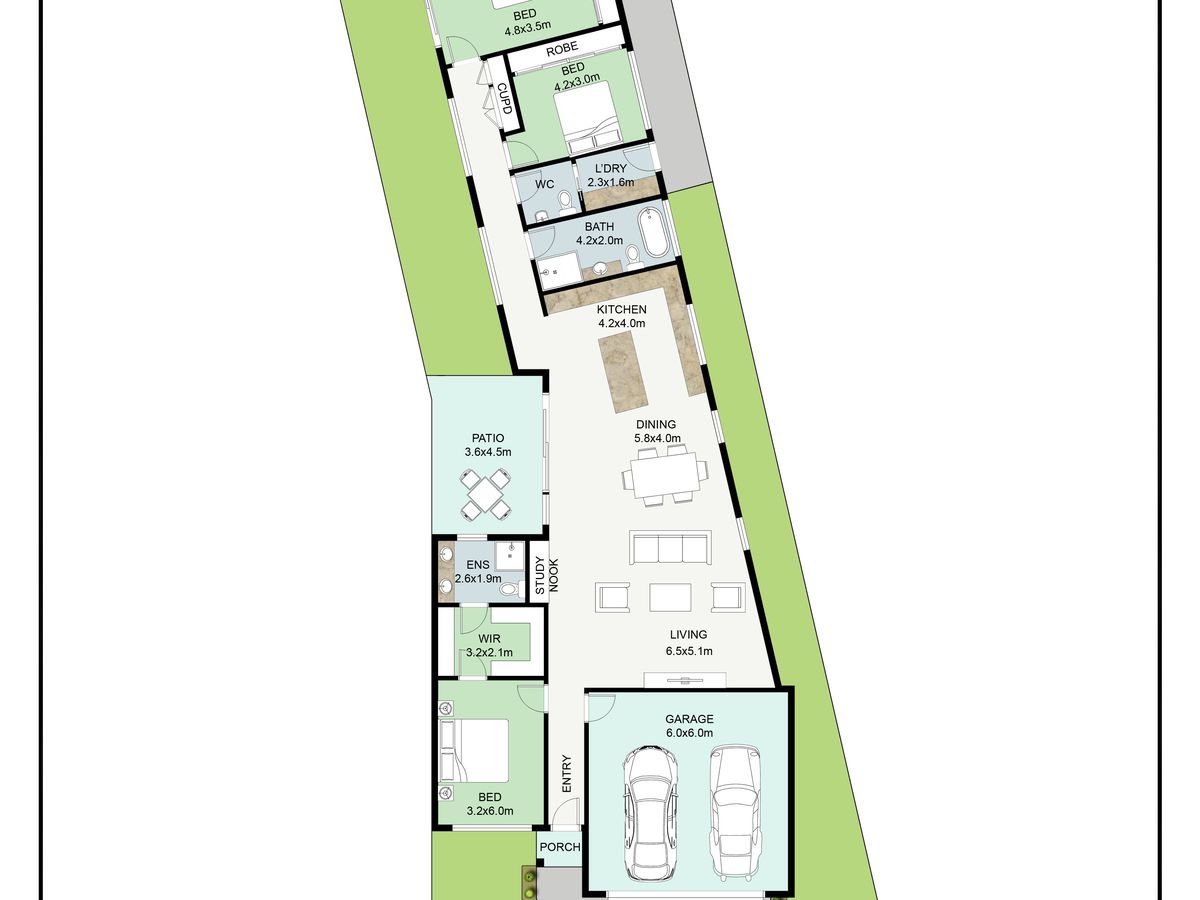 A modern masterpiece offering a spacious and practical open-plan design with beautiful cathedral ceilings, featuring exposed timber beams spanning the chef's kitchen incorporating a large breakfast bar, stone bench tops and quality appliances. The expansive living space is large enough to accommodate the potential for a 4th bedroom, and the 3 bedrooms are all generously sized with built-in robes, with the main bedroom being a completely private parent retreat, with a huge walk-through wardrobe and an elegant and stylish, oversized ensuite.