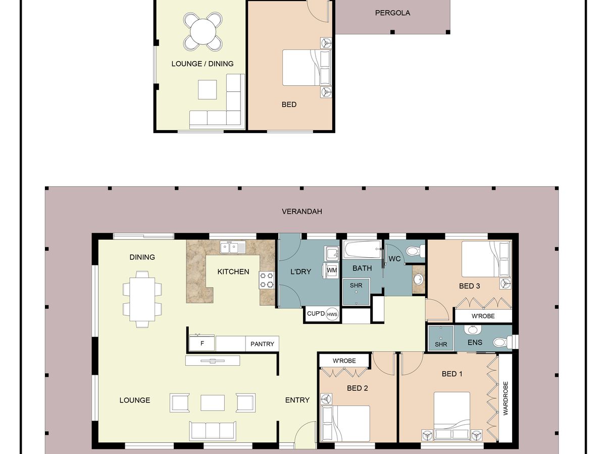 There is a completely separate flat/studio, fully self-contained and connected to the home by a huge undercover entertaining area.
